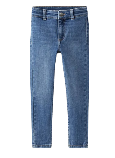 - Jeans mid blue wash with an adjustable inner waistband and button closure at front